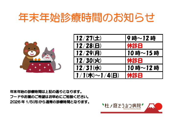 年末年始診療時間のお知らせ